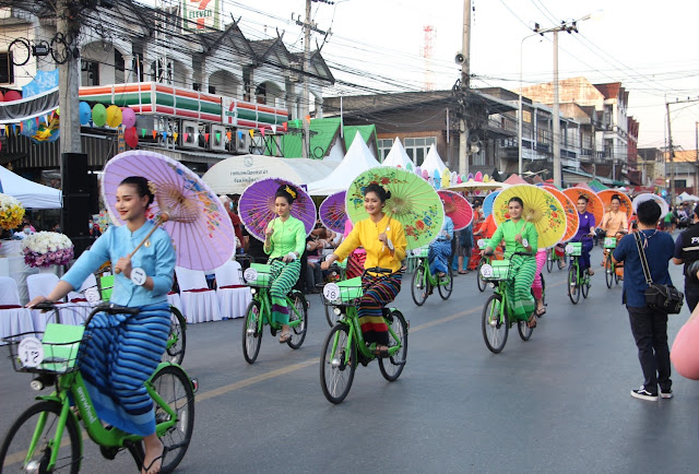 ☂️ขบวนแม่ญิงขี่รถถีบกางจ้อง วันละ 2 รอบ (10:00 และ 14:00 น.) บนถนนสายบ่อสร้าง